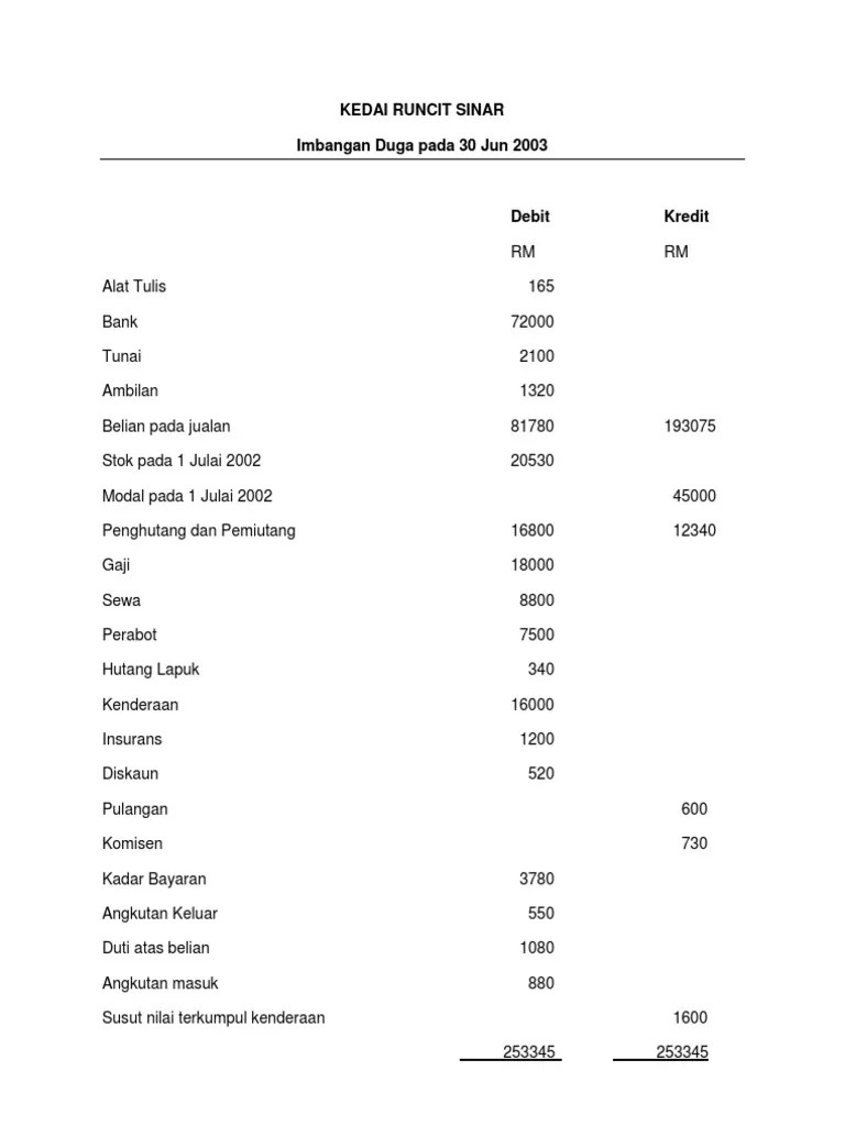 Contoh jawapan syarikat ahmad sdn. Imbangan duga adalah satu senarai baki debit dan baki kredit yang diambil atau.